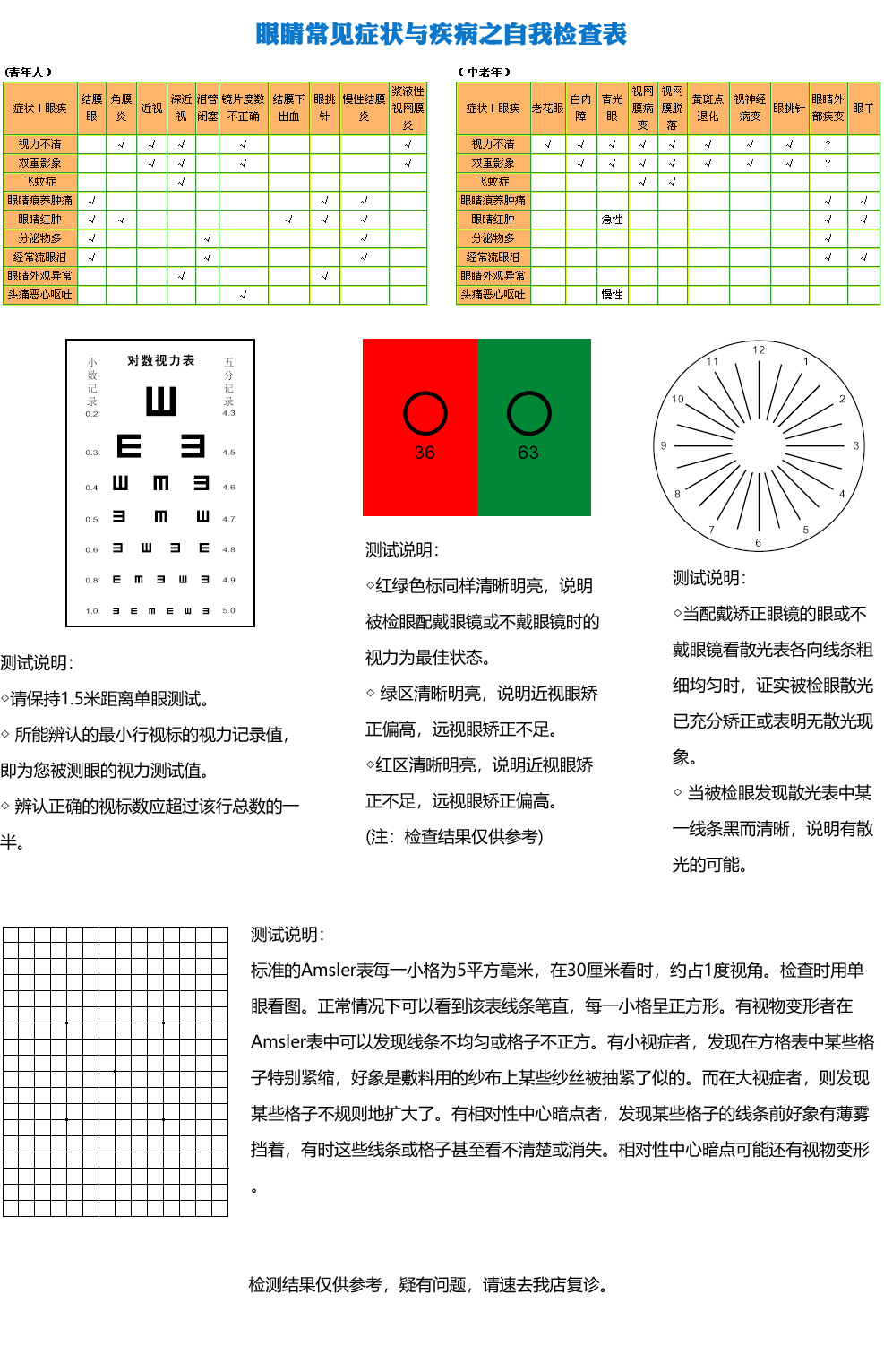 眼睛常見(jiàn)癥狀與疾病之自我檢查表